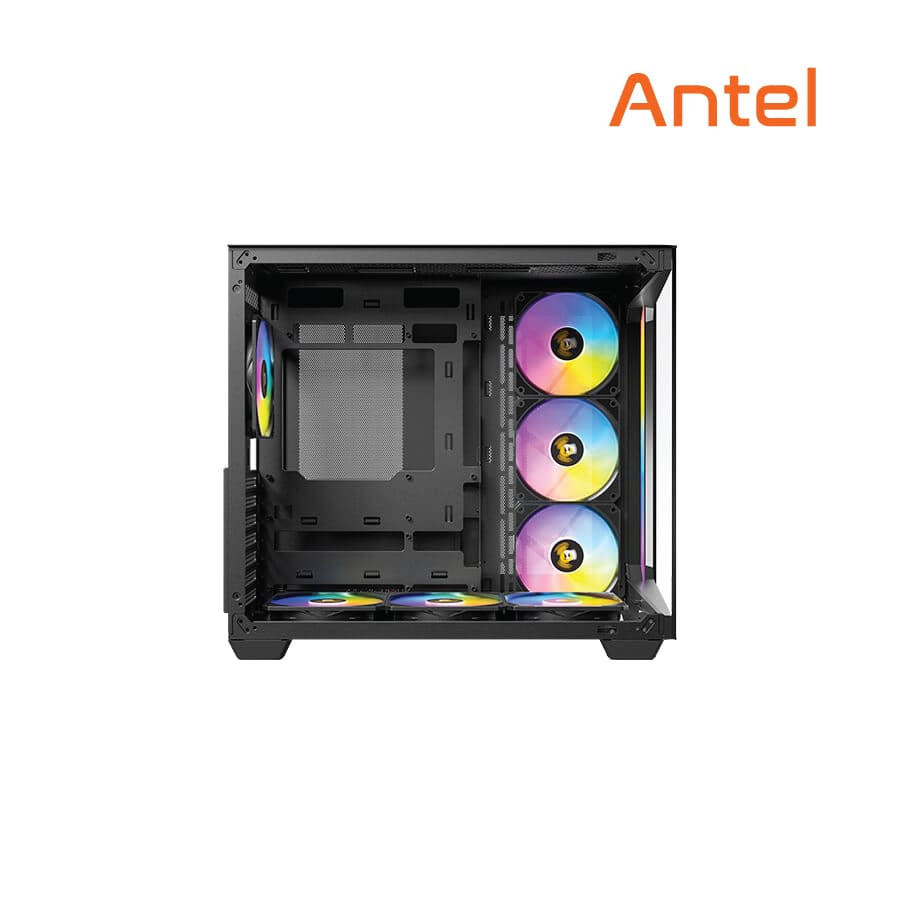 The Antec C5 BLACK ARGB from the Constellation Series is a cutting-edge dual-chamber gaming case designed for ultimate airflow, stunning aesthetics, and efficient cable management. Featuring a 270° panoramic tempered glass panel, this mid-tower case allows you to showcase your build like never before. The dual-chamber layout separates the PSU and cables from core components, enhancing airflow and cleanliness. With pre-installed ARGB fans, wide hardware compatibility, and support for vertical GPU mounting, the Antec C5 is the perfect foundation for any high-performance gaming rig.